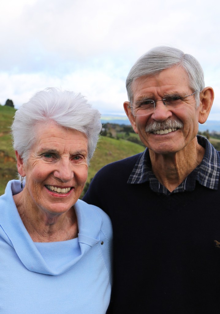 Renowned writer June Dooney with her deceased husband Godfrey in the rural setting of their Tauranga home. Godfrey died unexpectedly in July 2022 after being diagnosed with legionnaires disease.